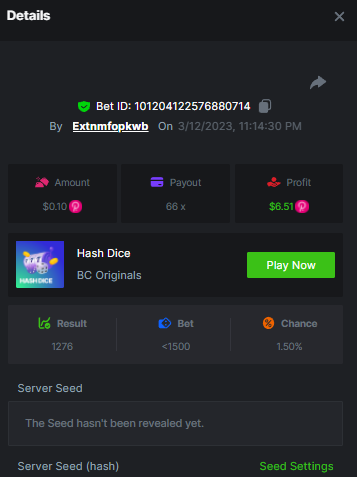 $1,500 Exclusive Weekend Hash Dice Prestige Challenge #76