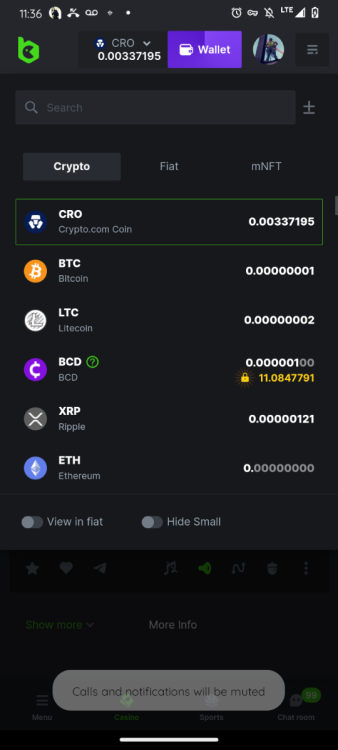 5. Website URL ( https://bc.game ) Device & System ( phone Moto G Pure Android 11) Feedback / Live bug / User experience. ( Wallet wont update says i have money i dont have ) Journey ( I use all of any crypto in my wallet and it keeps saying I have crypto wont go to zero ) Screenshot In this screen shot all my CRO is gone but it still displays .00337195