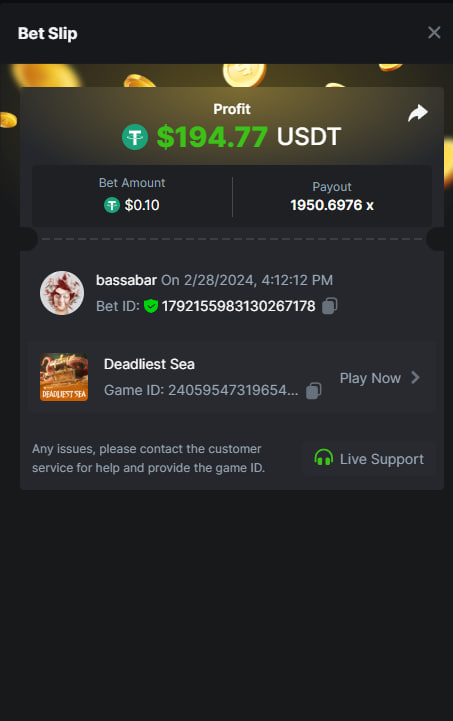 Highest multiplier: Deadliest Sea - 1950.6976x https://bc.game/#/sd/11TLGQLGWPG70N (Lower multies) Runaway! Zombies https://bc.game/#/sd/11TCQ47JITIDBV 210.715x Wizard's Academy https://bc.game/#/sd/11TCNEFBA3EN67 525.749x Dragon Quest https://bc.game/#/sd/11T8Q3XZB6KONJ 280.2802x John Wild https://bc.game/#/sd/11TCEMC530RYXV 543.1x