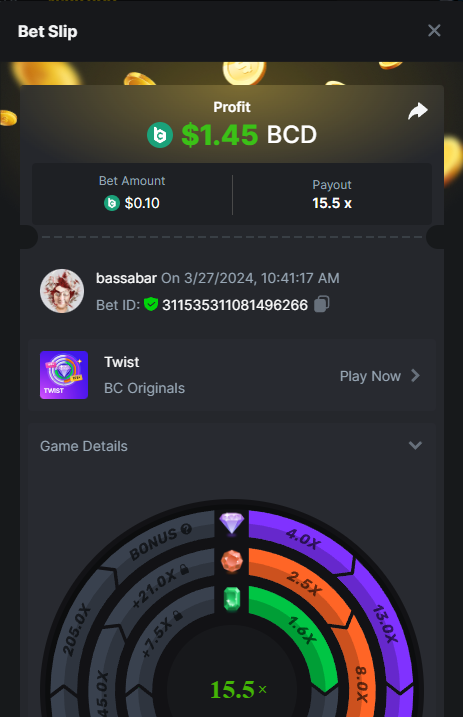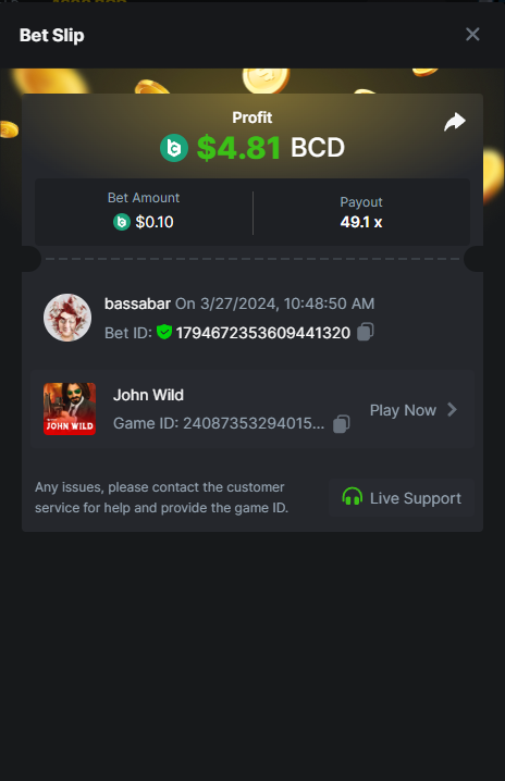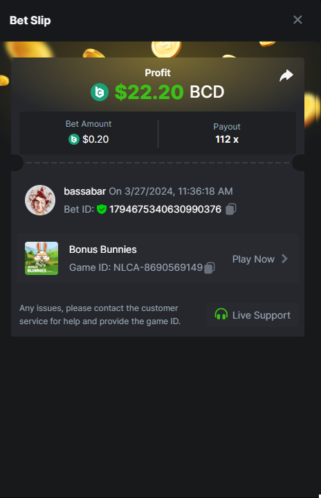 Hi @BCGame_Maxim, There is a task to hit a natural blackjack with red cards only. I hit it with a bet of 0.1$, though it shows not as a win or 0.1$ basebet. I checked with a few other people and they have the same issue of the bets not showing correctly. I tried different coins, show in different fiat valuta, etcetc, none of it helps to get it correct. My question is will this bet be accepted this way? And if not, what could I do to get it right? I posted the bill ID with the same gameid to show i placed it and won with 0.1$: Betlink: https://bc.game/#/sd/11VIK5D84FLS13 -