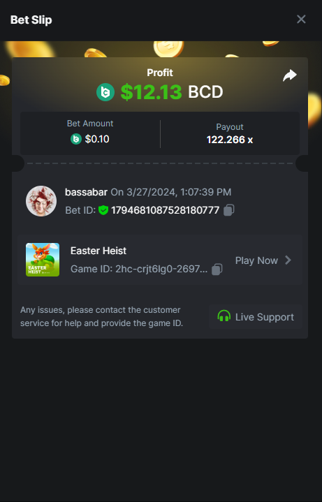 Hi @BCGame_Maxim, I want to submit my bet for the crash challenge: https://bc.game/promotion/b4c8825db367cdd But the submit button doesnt work? How can I submit my bet? Thanks in regards, Bassabar