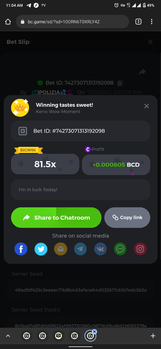 POLIZIA replied to BCGame_Maxim's topic in VIP Challenges