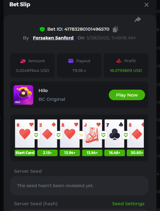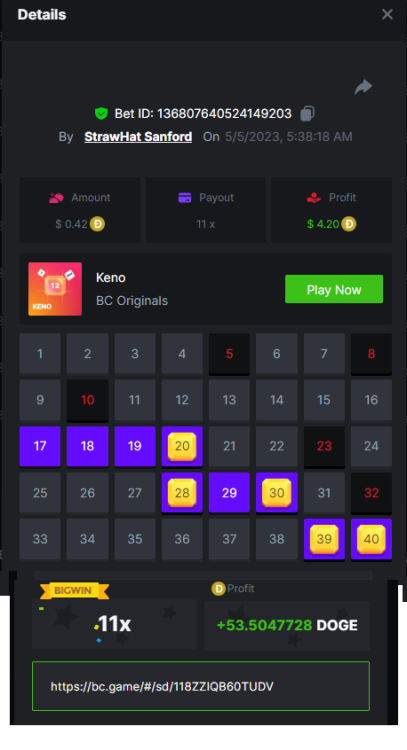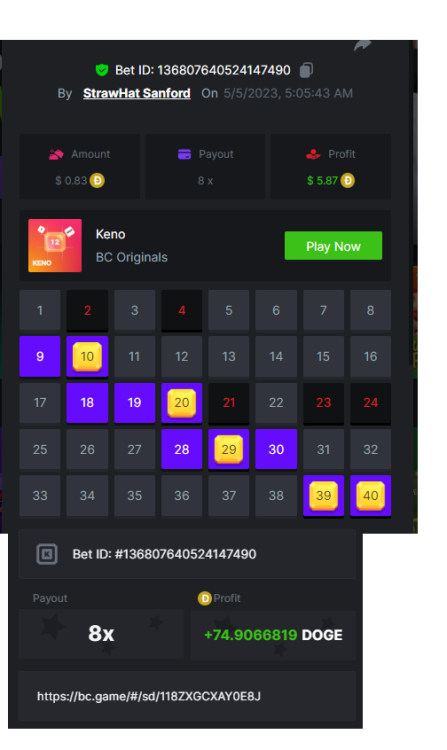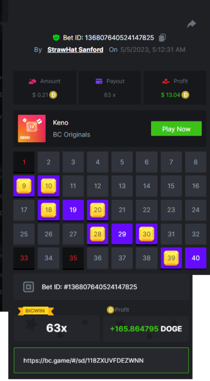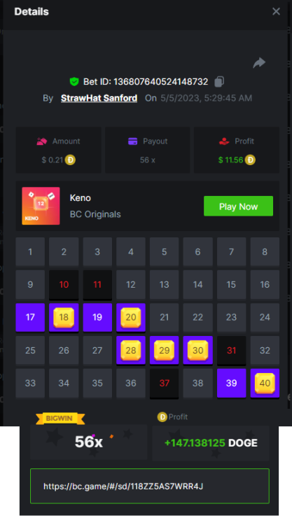 3. https://bc.game/sd/?sd=10LGRJ43LAC07N Bet ID: Bet ID: #41783280101496570 Multiplier: 79.56x