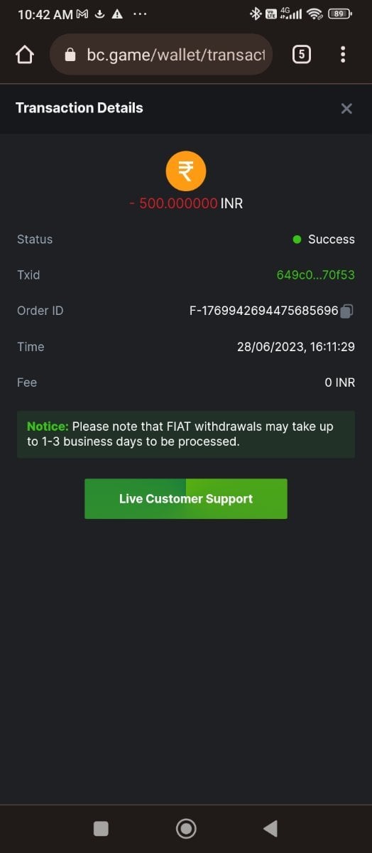 Inr fiat withdrawal pending over 48 hours