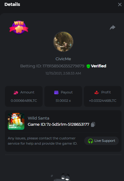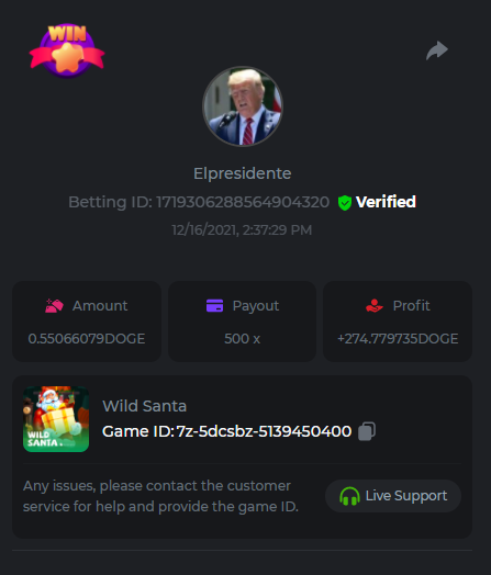 Wild Santa                ID de la apuesta: 1719190518607522311