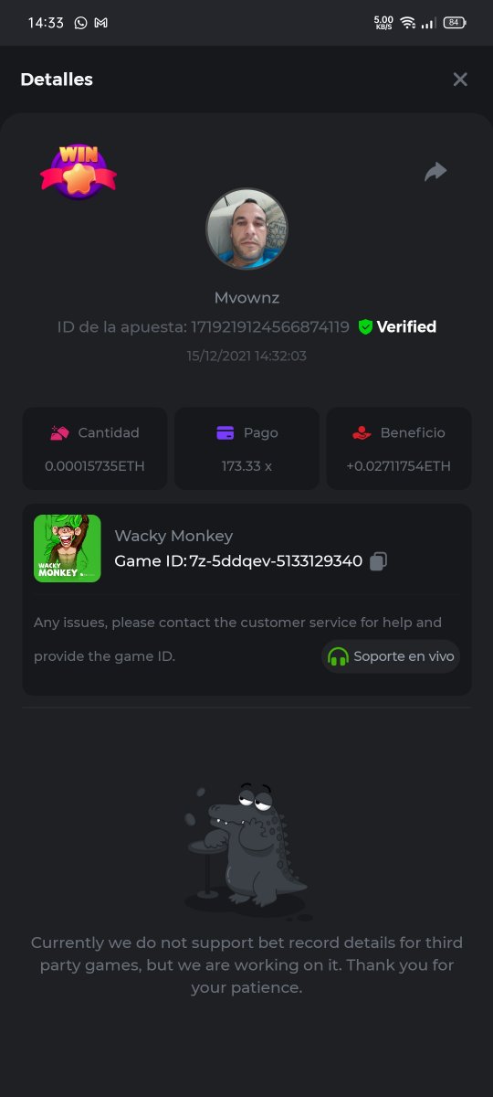 Wacky Monkey        ID de la apuesta: 1719187447280599936
