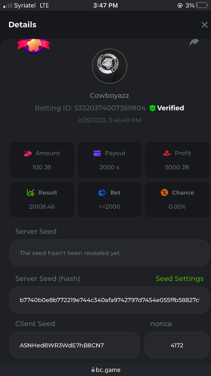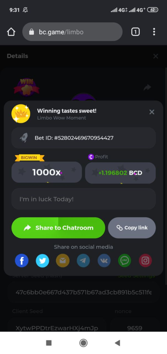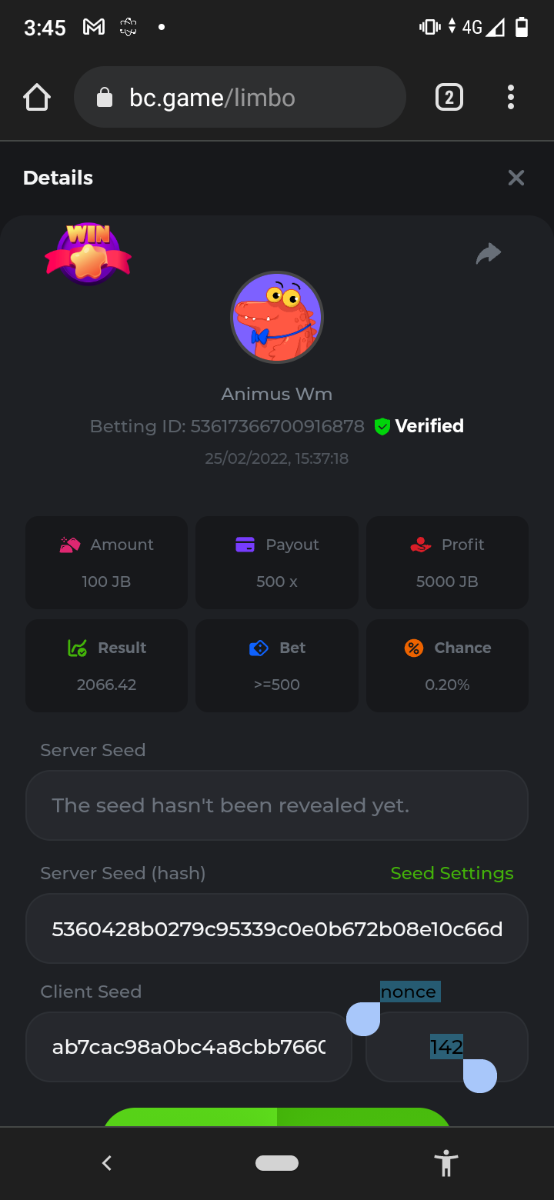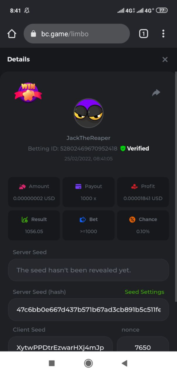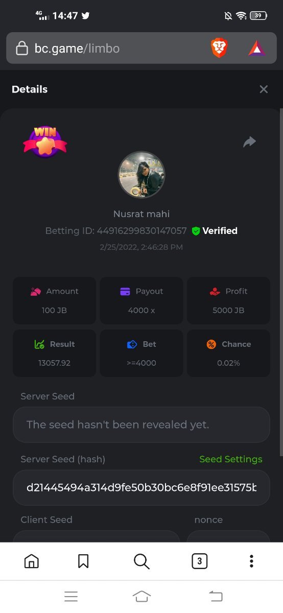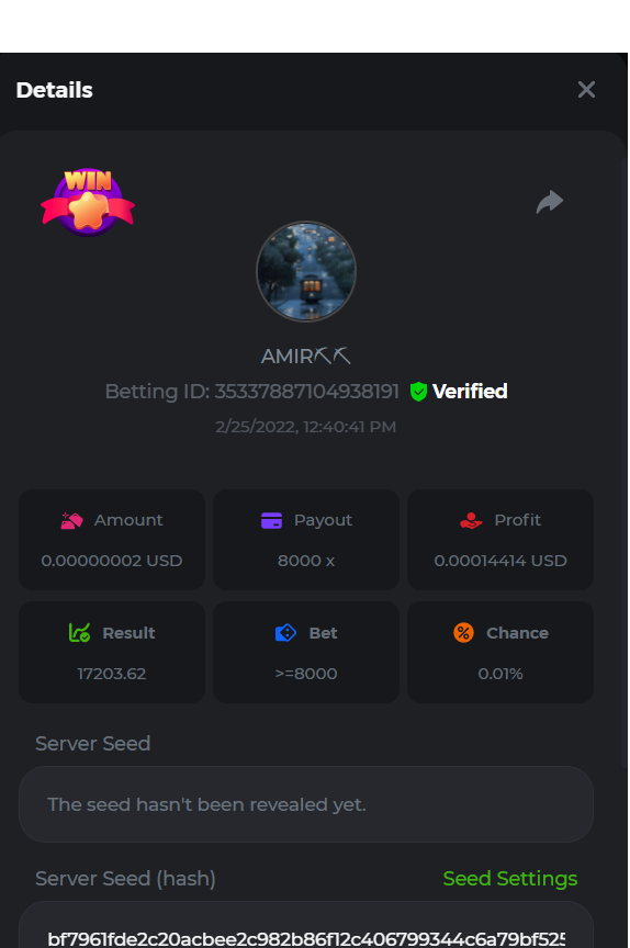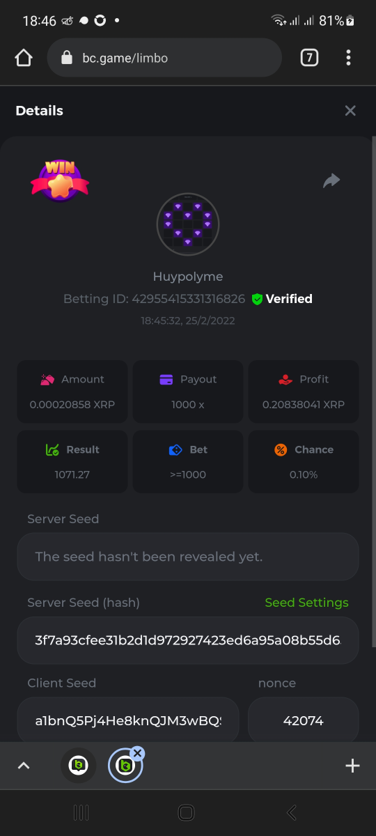 BC_Morningstar Posted February 25, 2022 Share Posted February 25, 2022 Please look at this my target payout is 256000 but look what payout i got i hope thats counted and the profit still give the 256000x so its counted 256000x - https://bc.game/sd/?sd=10F3W93VM9ZLZN 500x - https://bc.game/sd/?sd=10F446BK2C53PV 1000x - https://bc.game/sd/?sd=10F52YAQ9CFAC3 2000x - https://bc.game/sd/?sd=10F5315UJY8ZDF Link to comment Share on other sites More sharing options...