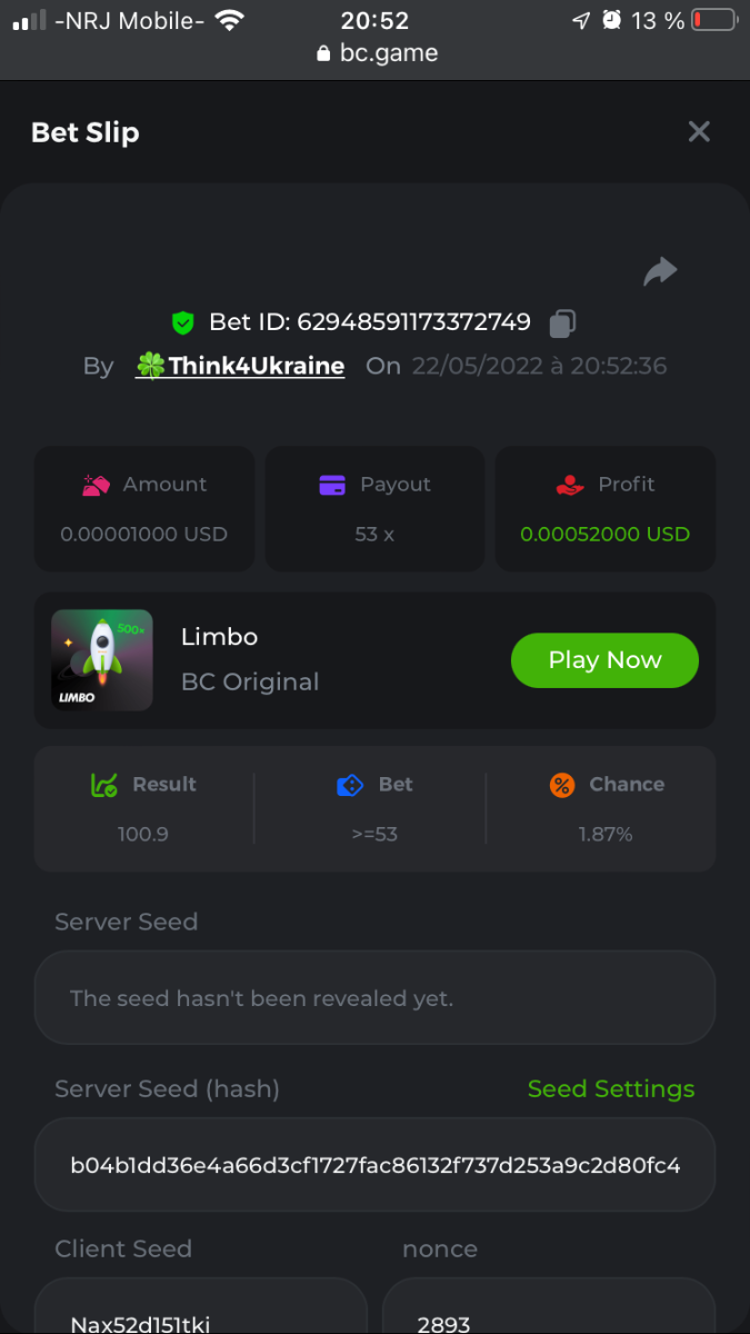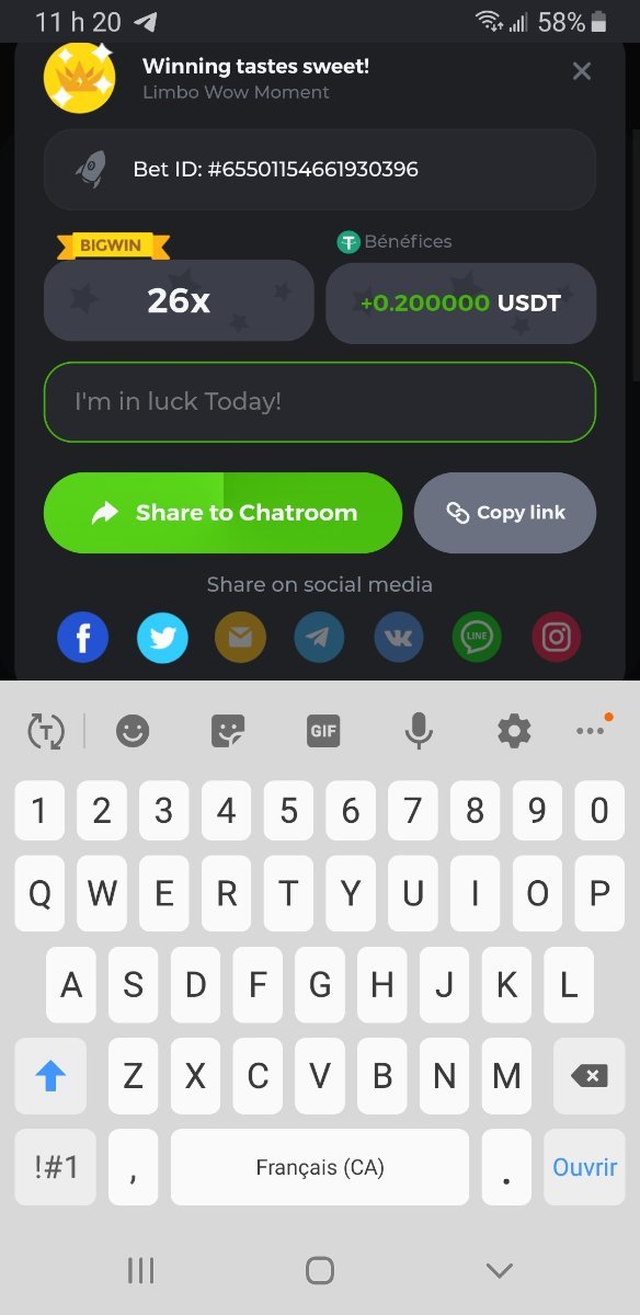 Member AkSyEn03 Posted May 22, 2022 Member Share Posted May 22, 2022 🏵ÉVÉNEMENTS DU WEEK-END🏵Uniquement pour la room FrançaiseDÉFI :Heure de début : 22Mai 2022 à 13h. Heure de fin : 13h le 23 Mai/2022 24h de defi n'est ce pas merveilleux ^^ Quel est le défi ? Jeu : LIMBO Avoir un maximum de points possible sur les 17points x26,x53, x103, x203, x 303 x 503, x 703, x903, x1003, x2003 x3003, x5003, x7003, x9003, x10003, x15003 x20003 Bonus pour x50003 Il faut valider minimum 5 bet x53, x103, x203, x 303 x 503 pour la qualification. SI égalité sur un multiplicateur , le filtre sélectionnera en 2éme la somme et sera prise en compte .VIP minimal > Il n'y a pas de niveau VIP minimum.Pari minimum : 0$ JB est pris en compte Récompenses 19$12$7$4eme place à 10 -ème place 2$Conditions bonus :Accédez au jeu pour choisir votre ID de pari, cliquez sur l'icône Partager (↷) puis sur Copier le lien Dans le même message, téléchargez une capture d'écran de votre gain en cliquant sur l'ID du jeu 1. N'utilisez pas plusieurs comptes 2. Les paris soumis avant ou après la date et l'heure limite ne seront pas acceptés 4. tout manquement au conditions de bonus, vera son paris annulé. alors lisez bien avant de commencer et BC Game vous souhaite des moments heureux et profitablesBonne chance, que le meilleurs gagne !! Link to comment Share on other sites More sharing options...
